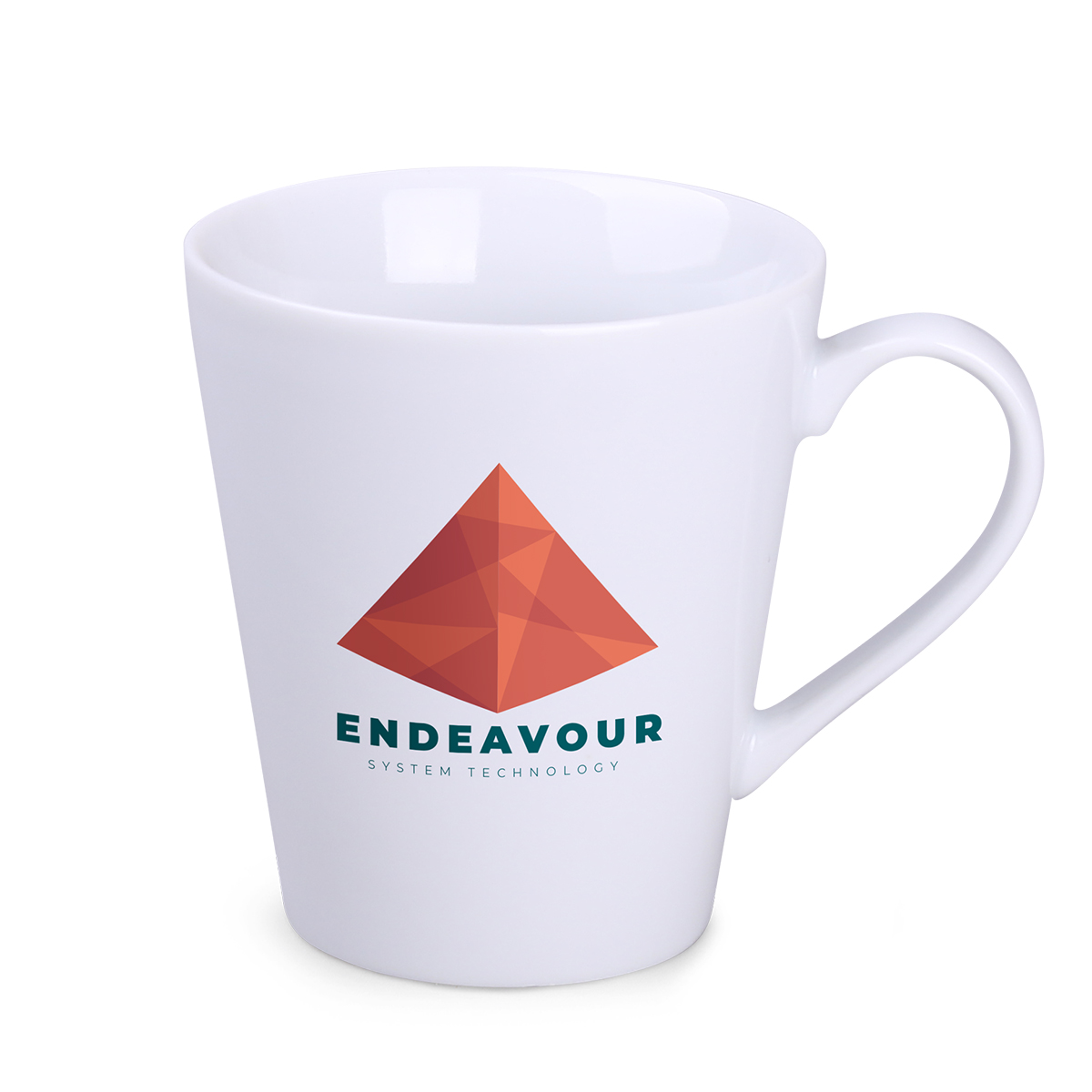 Pojemny kubek reklamowy o rozszerzających się ku górze stożkowych ściankach i klasycznym uchwycie.